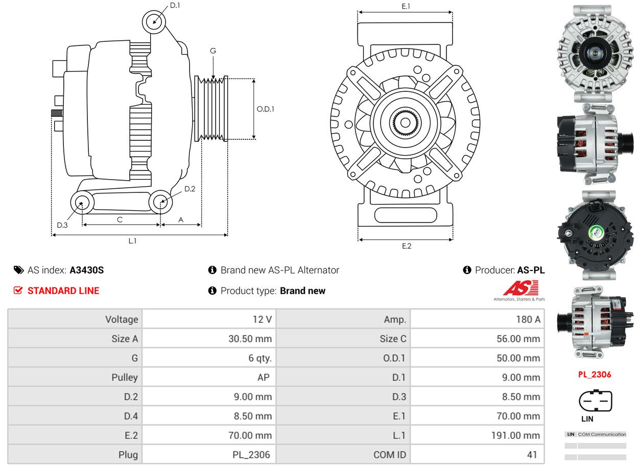 AS-PL Alternatore A3430S AS