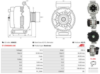 AS-PL Alternatore A3662S AS