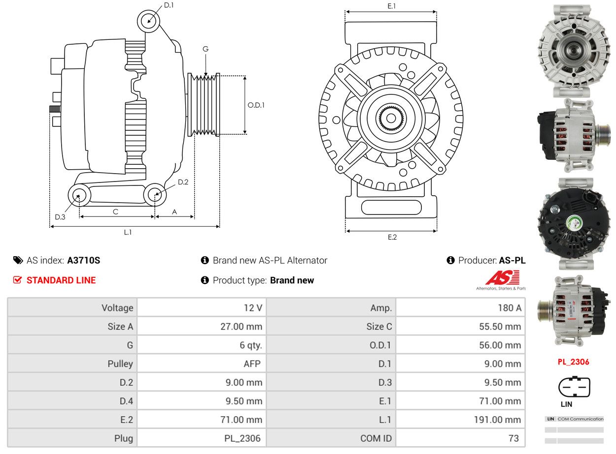 AS-PL Alternatore A3710S AS