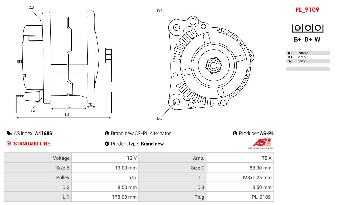 AS-PL Alternatore A4168S AS