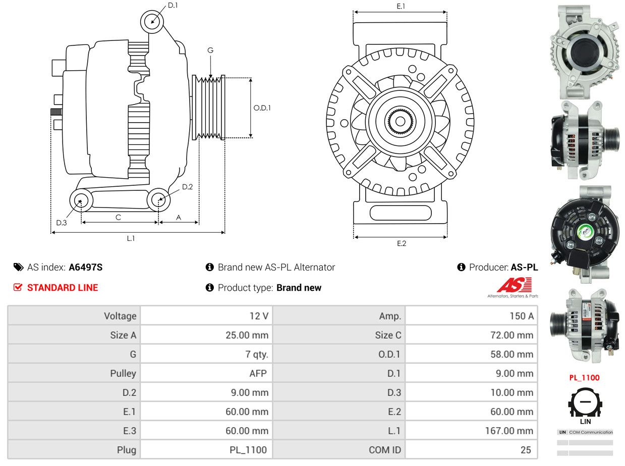 AS-PL Alternatore A6497S AS