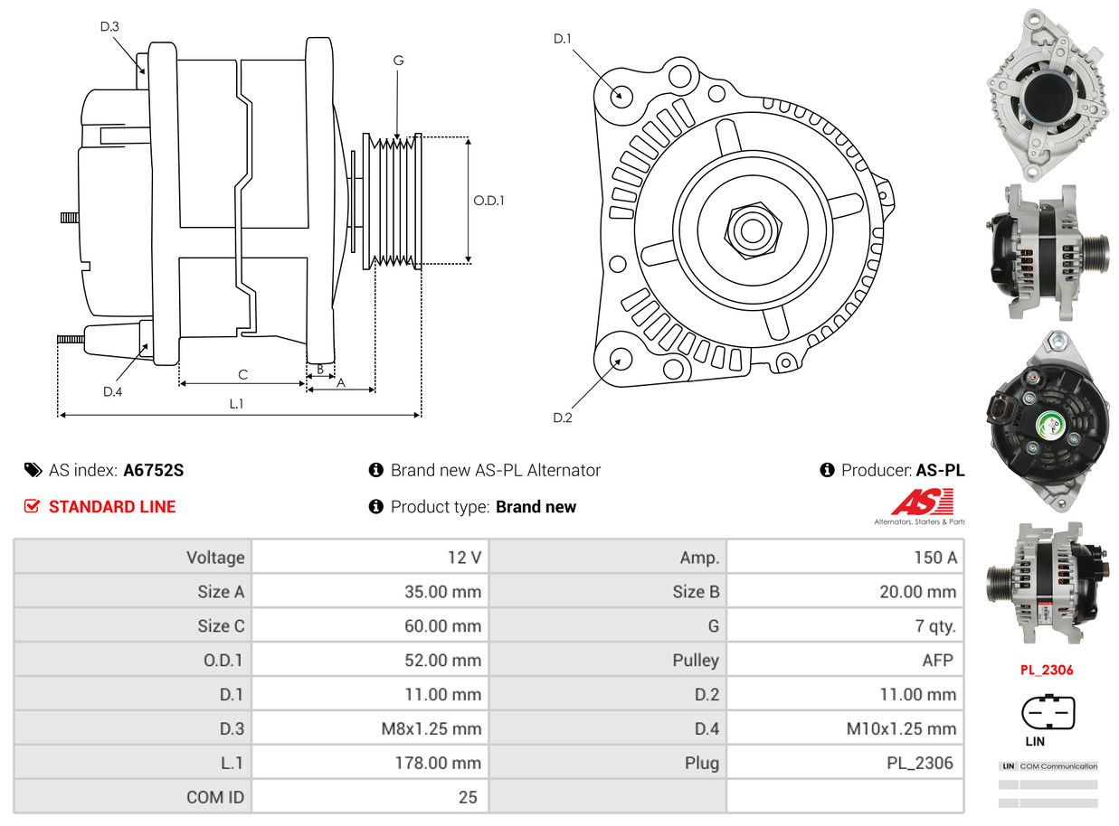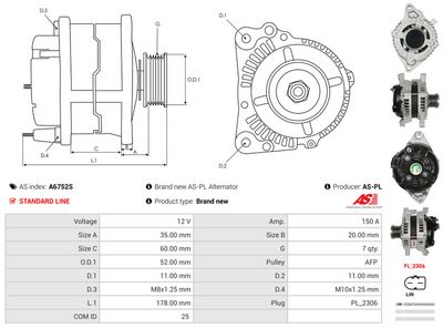 AS-PL Alternatore A6752S AS