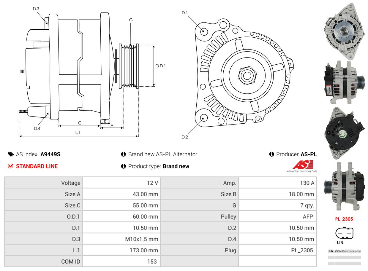 AS-PL Alternatore A9449S AS