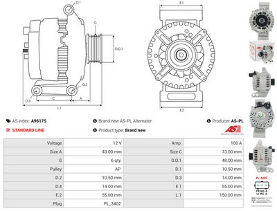 AS-PL Alternatore A9617S AS