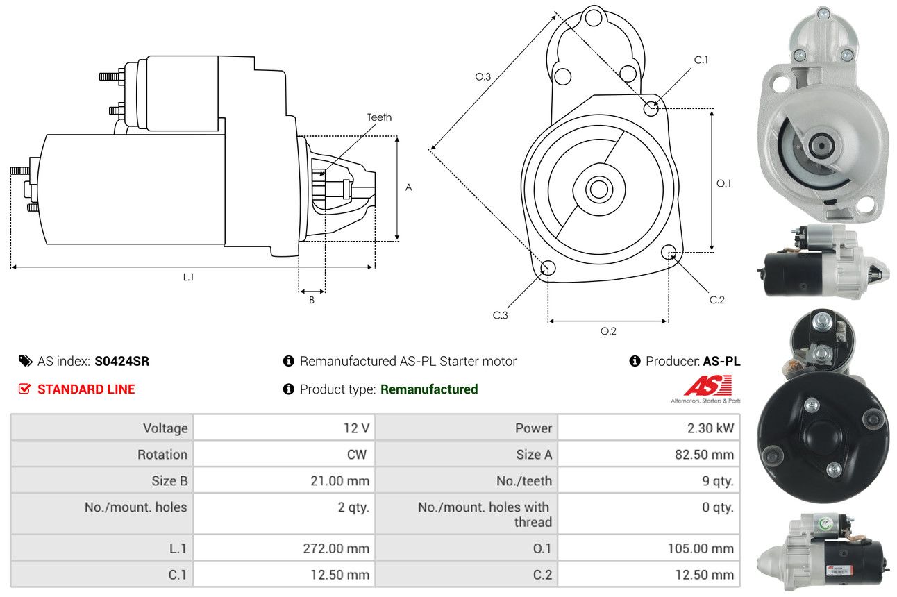 AS-PL Motorino d'avviamento S0424SR Rigenerato AS