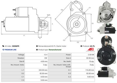 AS-PL Motorino d'avviamento S0506PR Rigenerato AS