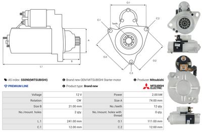 AS-PL Motorino d'avviamento S5090(MITSUBISHI) Mitsubishi