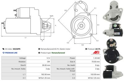 AS-PL Motorino d'avviamento S5234PR Rigenerato AS