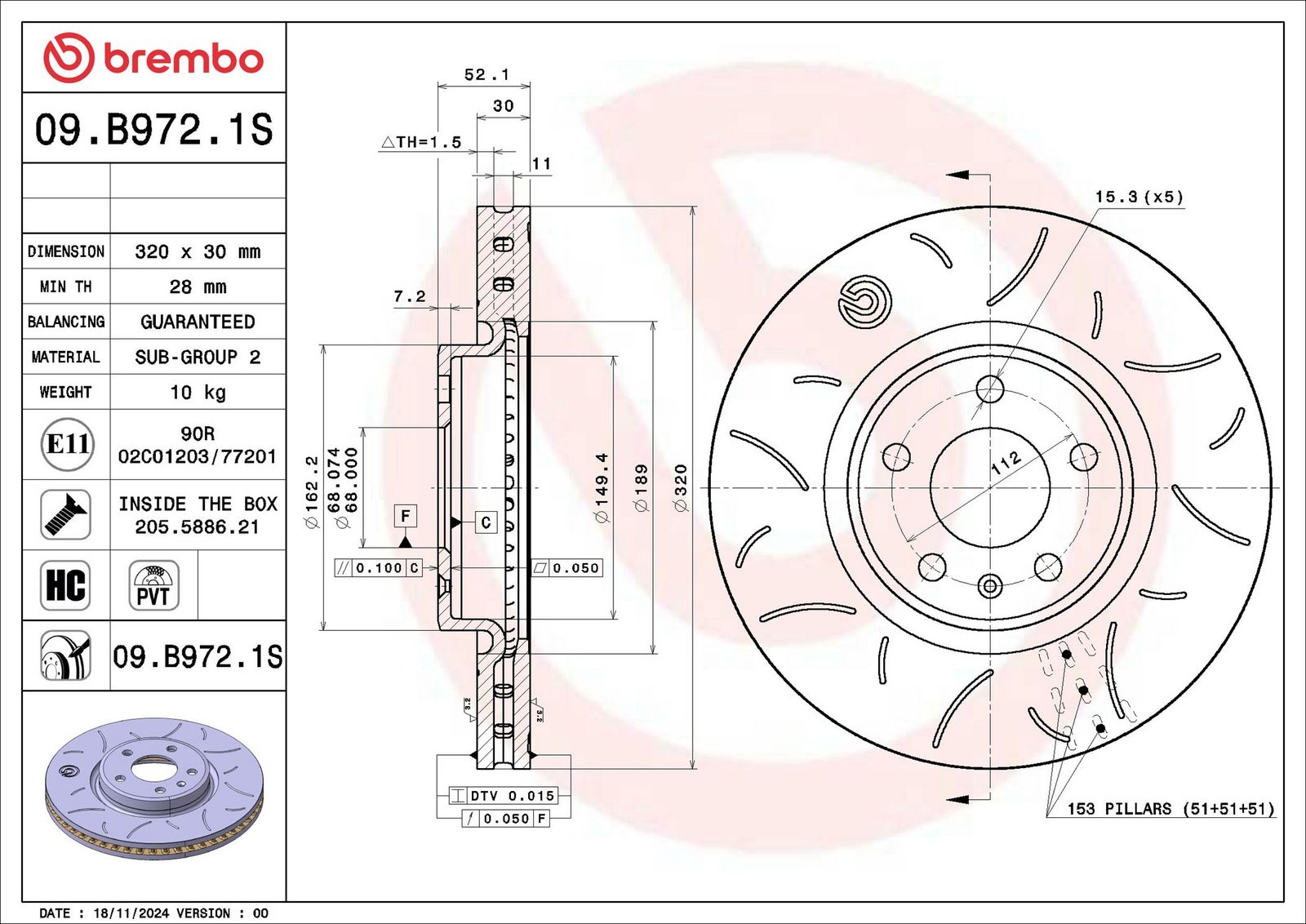 BREMBO Disco freno 09.B972.1S