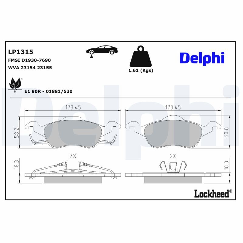 DELPHI Kit pastiglie freno, Freno a disco LP1315