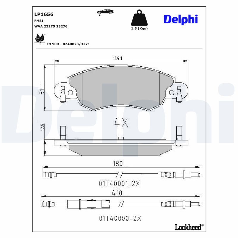 DELPHI Kit pastiglie freno, Freno a disco LP1656