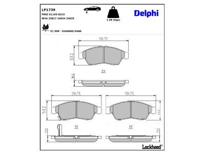 DELPHI Kit pastiglie freno, Freno a disco LP1739