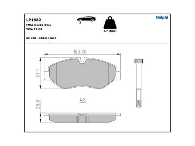 DELPHI Kit pastiglie freno, Freno a disco LP1982
