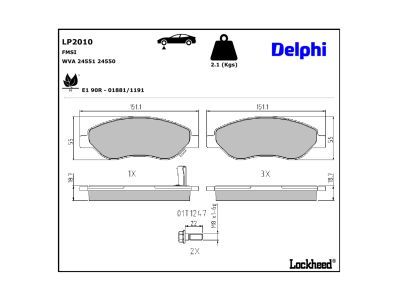 DELPHI Kit pastiglie freno, Freno a disco LP2010