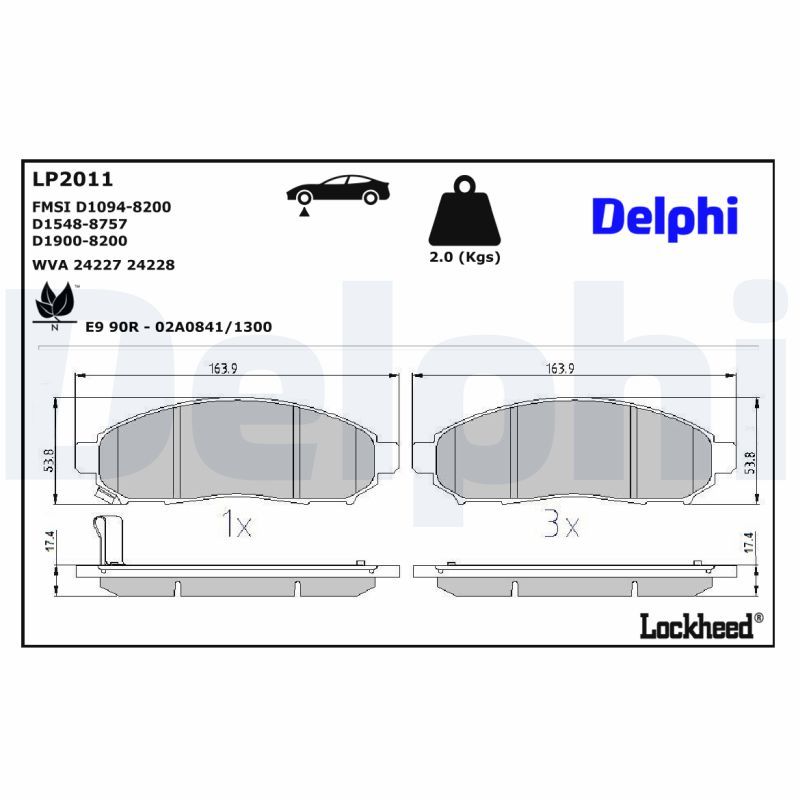 DELPHI Kit pastiglie freno, Freno a disco LP2011