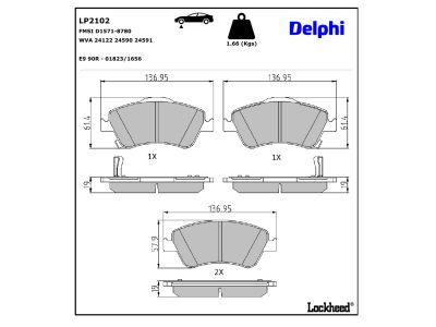 DELPHI Kit pastiglie freno, Freno a disco LP2102