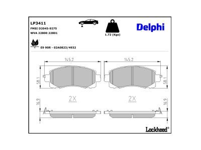 DELPHI Kit pastiglie freno, Freno a disco LP3411