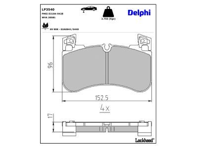 DELPHI Kit pastiglie freno, Freno a disco LP3540