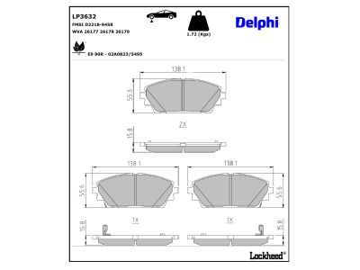 DELPHI Kit pastiglie freno, Freno a disco LP3632