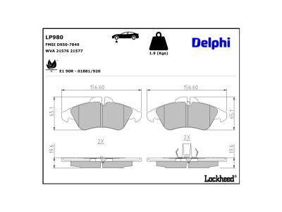 DELPHI Kit pastiglie freno, Freno a disco LP980