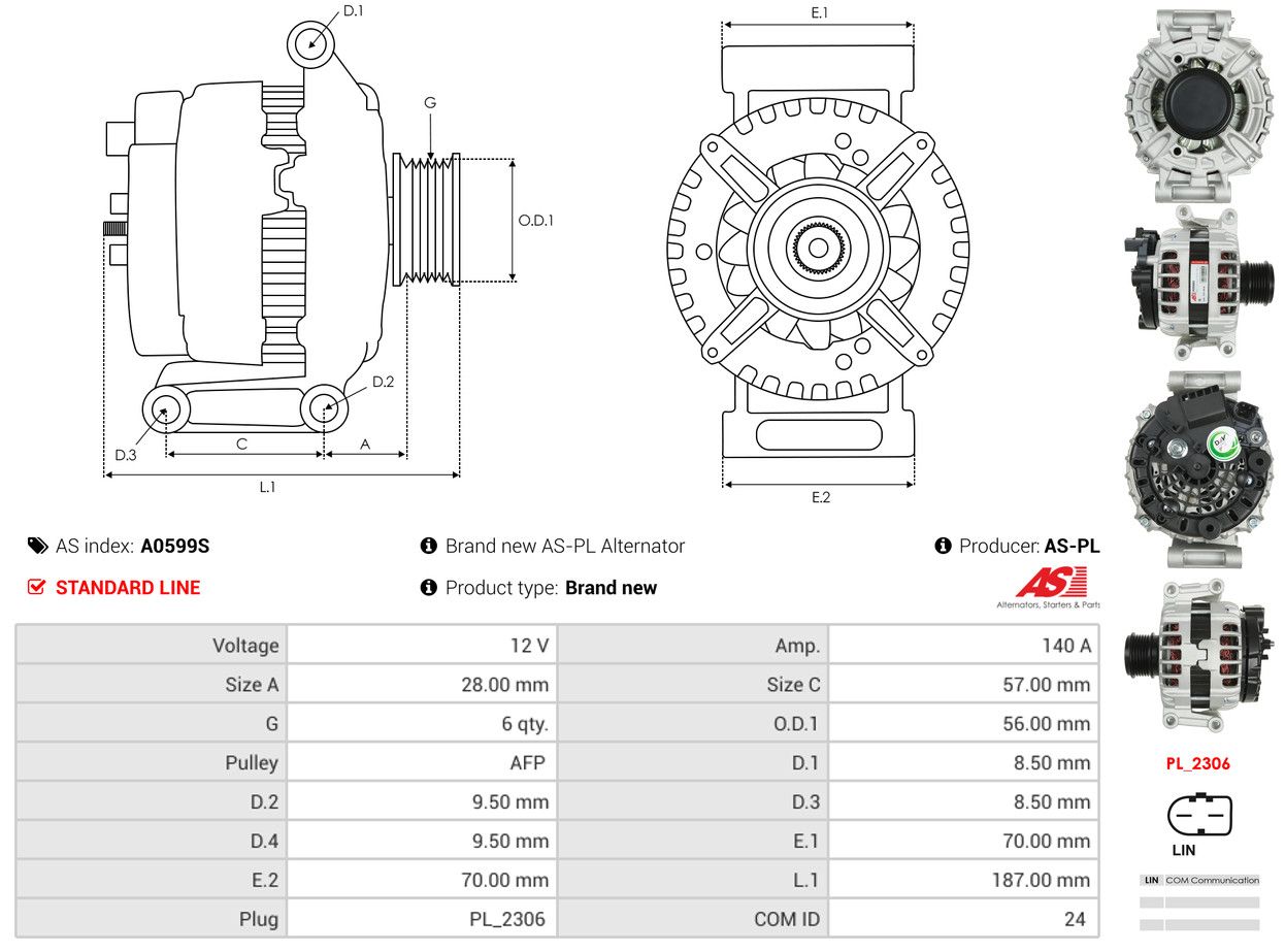 AS-PL Alternatore A0599S AS