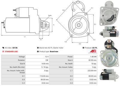 AS-PL Motorino d'avviamento S5136 AS